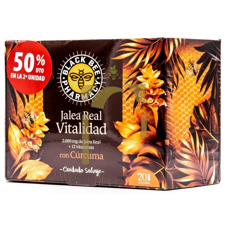 La jalea real Vitalidad de Black Bee Pharmacy combina el poder de la jalea real y la cúrcuma con las propiedades de la Vitamina C, B6 y B12, nutrientes que ayudan a disminuir el cansancio y la fatiga.