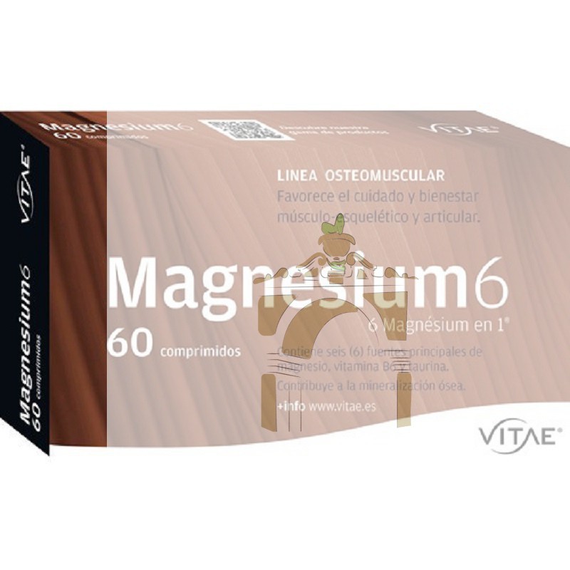 Complemento alimenticio a base de 6 fuentes principales de magnesio, vitamina B6 y taurina.