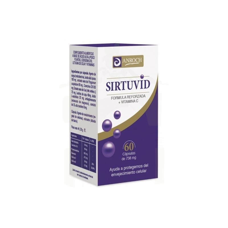 Gracias a su composición a base de potentes antioxidantes, Sirtuvid contribuye a disminuir el envejecimiento celular prematuro, siendo un remedio frente a las especies reactivas de oxígeno.