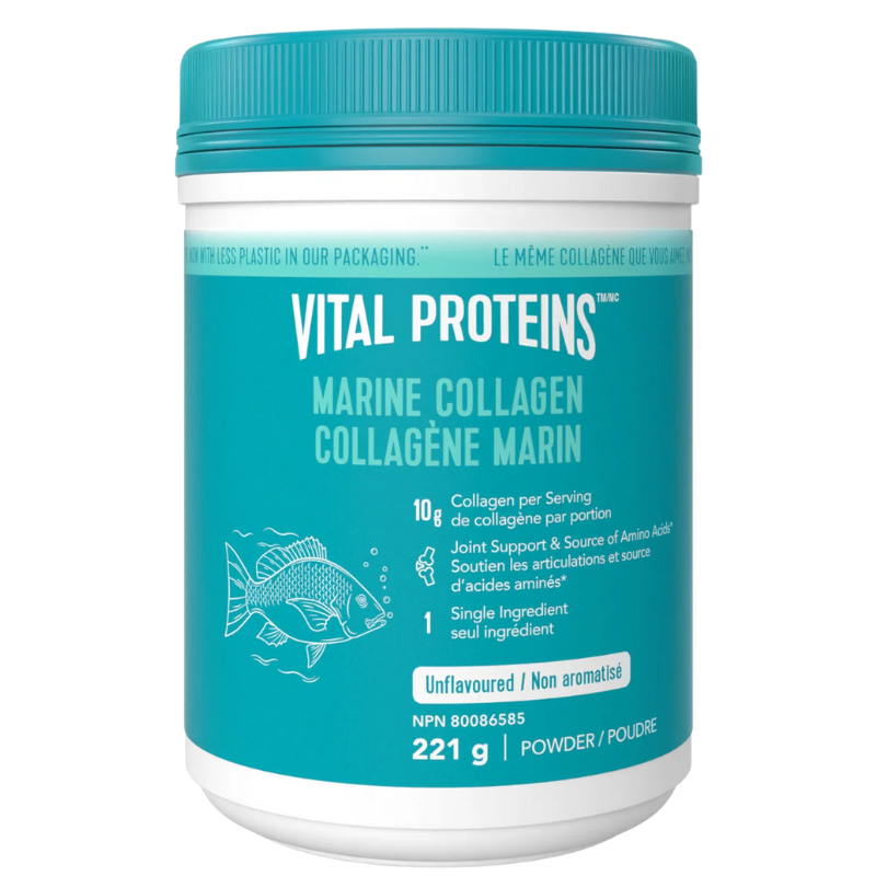 Complemento alimenticio a base de colágeno marino que favorece el mantenimiento en buen estado de huesos y articulaciones.