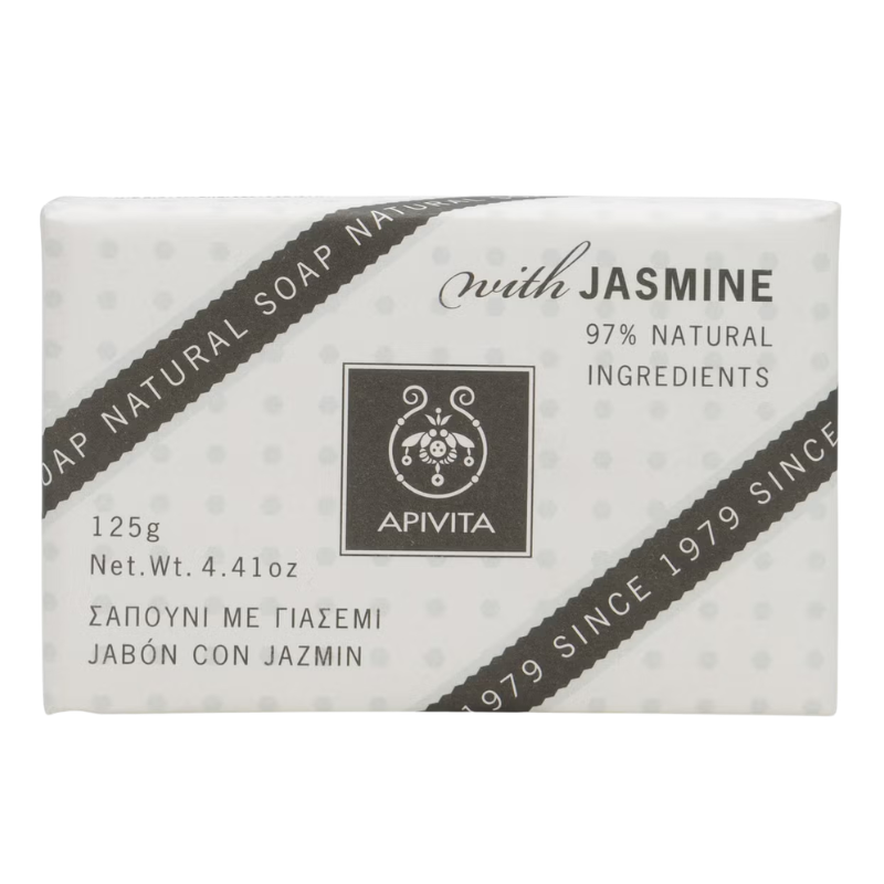 El jabón natural con jazmín de Apvita está indicado para la limpieza corporal y facial de todo tipo de pieles.