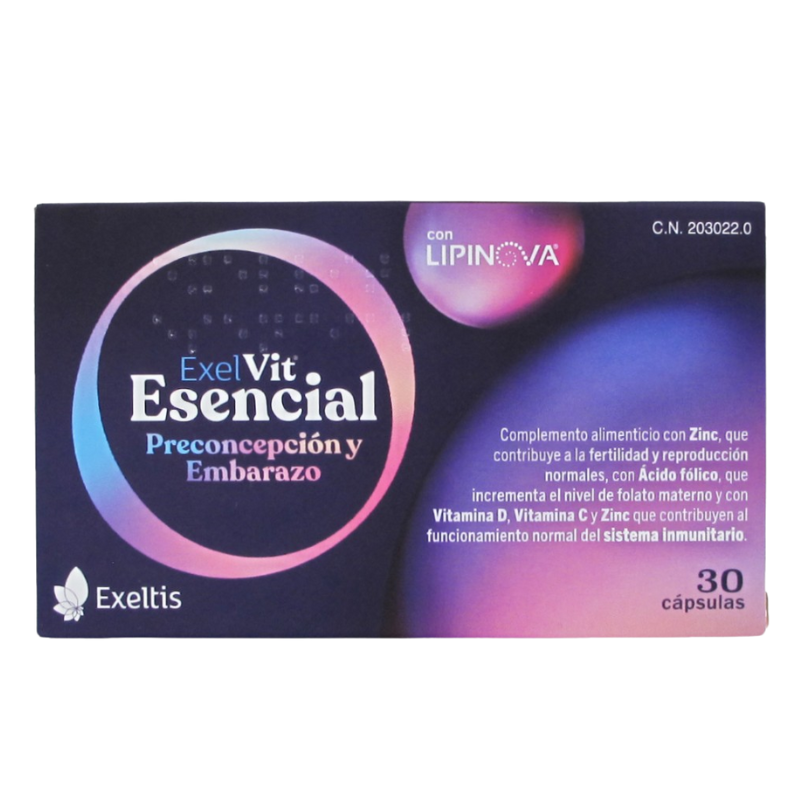 Exelvit Esencial con Lipinova® , es un complemento alimenticio cuya nueva fórmula contribuye a cubrir las necesidades nutricionales de la mujer
