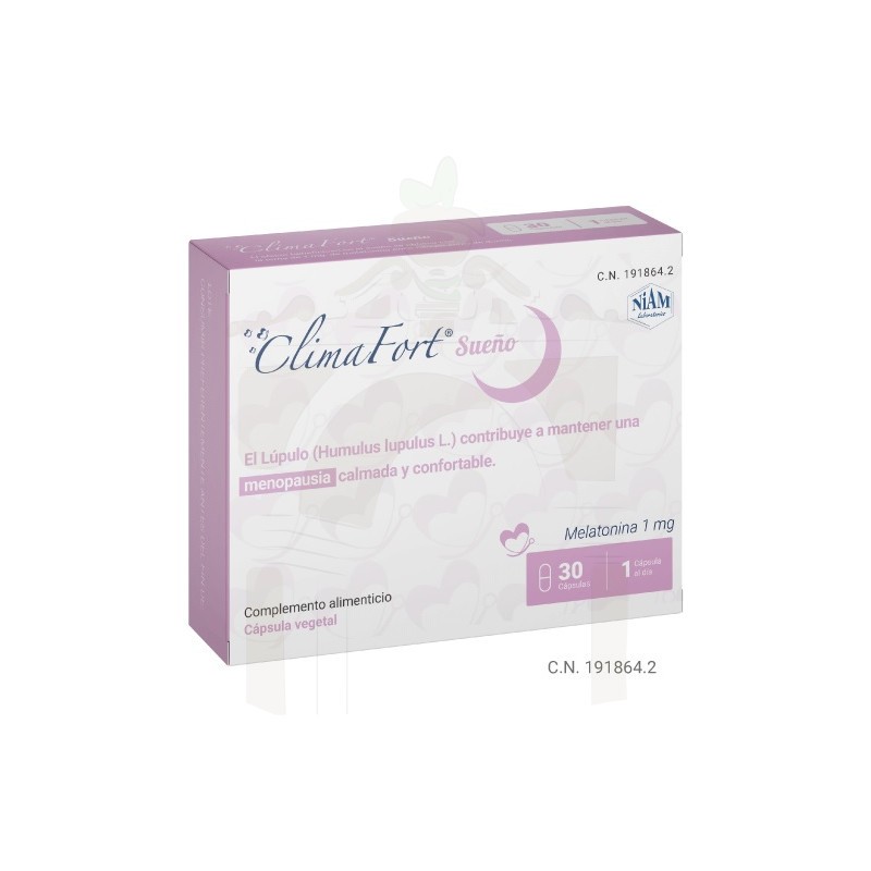 ClimaFort® SUEÑO es un complemento alimenticio con ingredientes de origen natural que contiene lúpulo y melatonina.