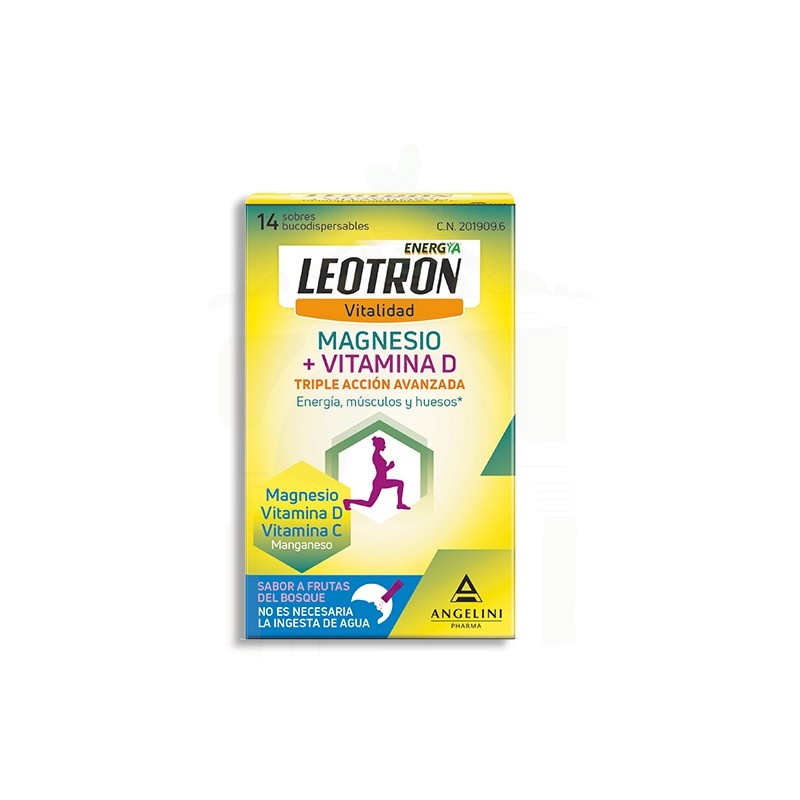 Leotron Magnesio y Vitamina D se presenta en forma de sobres bucodispersables para tomar sin necesidad de agua.