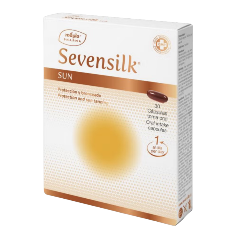 Sevensilk Sun es el complemento alimenticio ideal a las cremas solares porque ayuda a obtener una protección desde el interior más completa y profunda mientras disfrutamos plenamente del sol.