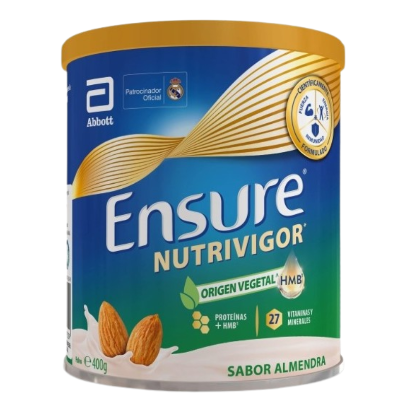 Almidón de maíz hidrolizado, proteínas de origen vegetal (aislado de proteína de soja, polvo de quinoa, proteína de arroz), aceites vegetales (aceite de girasol de alto contenido en oleico, aceite de soja, aceite de canola), oligofructosa (FOS), sacarosa, minerales (citrato potásico, fosfato dibásico de magnesio, fosfato de calcio tribásico, cloruro potásico, citrato sódico, cloruro sódico, fosfato dibásico de potasio, carbonato cálcico, sulfato de zinc, sulfato ferroso, sulfato de manganeso, sulfato de cobre, yoduro potásico, molibdato sódico, cloruro de cromo, selenato sódico), β-Hidroxi-β-metilbutirato de calcio monohidrato (CaHMB), aroma, emulgente: lecitina de SOJA , cloruro de colina, vitaminas (C, E, pantotenato cálcico, niacinamida, B6, B2, palmitato de vitamina A, B1, beta-caroteno, ácido fólico, K1, biotina, D3, B12), taurina, L-carnitina, antioxidantes (palmitato de L-ascorbilo, extracto rico en tocoferoles)