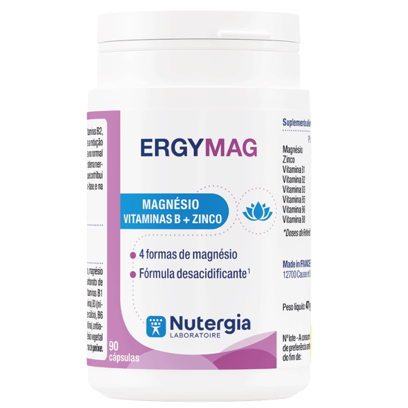 Ergymag es rico en magnesio y vitaminas B1, B2, B3, B5 y B6 que contribuyen a la reducción de la fatiga.