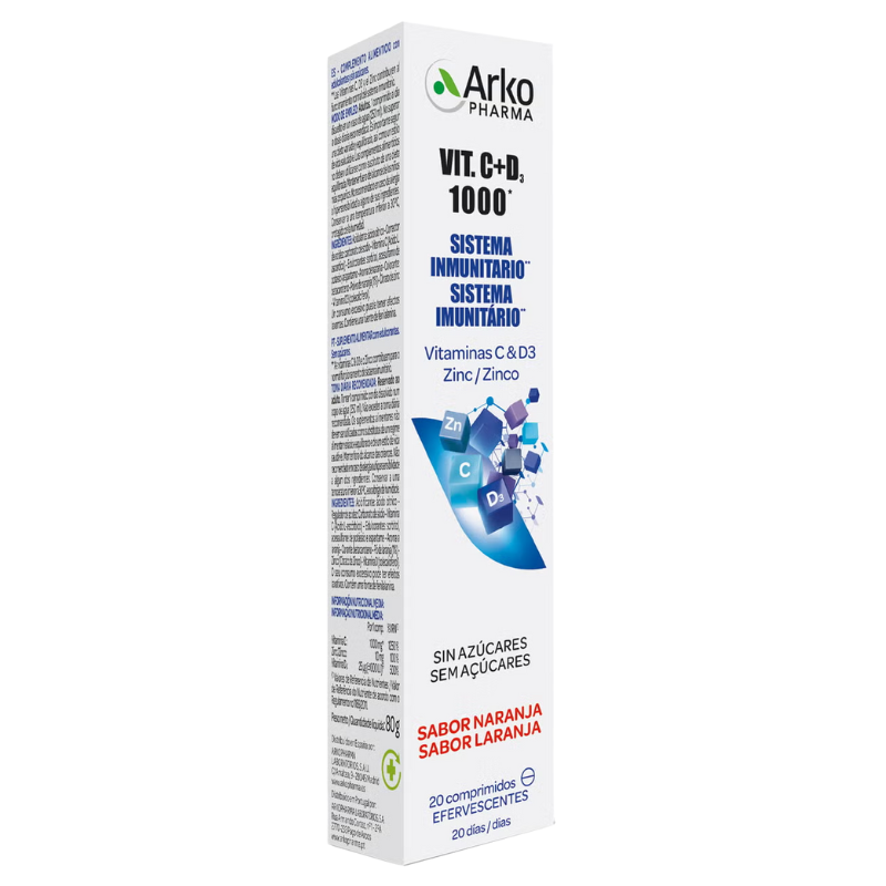del mercado para un especial refuerzo del sistema inmunitario: Vit C 1000mg + Vit D3 25 μg (1000UI) y 10mg de Zinc.