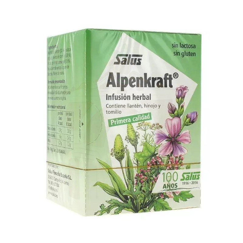 La infusión Alpenkraft está elaborada a base de llantén, tomillo, hinojo y liquen de Islandia que contribuyen a la salud de las vías respiratorias así como raíz de regaliz, malvavisco y malva.
