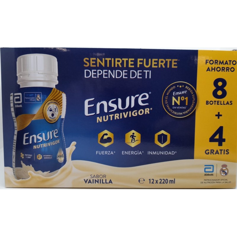 Ensure Nutrivigor Pack de 8+4 botellas se presenta listo para su uso.