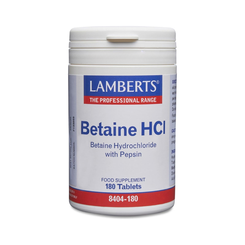 El ácido clorhídrico se produce de forma natural en el organismo, pero con el paso de los años su producción empieza a decaer, mermando el proceso digestivo. Es el encargado de activar la enzima llamada pepsina, que descompone las proteínas. La pepsina también participa en la correcta esterilización de los alimentos, favoreciendo la extracción de la vitamina B12. Una vez llegan al intestino los alimentos se siguen metabolizando para extraer otros nutrientes. La combinación de betaína con pepsina coadyuva a aminorar los síntomas generados por la falta de ácido en el estómago, como es el caso de la hinchazón, del dolor y del ardor.