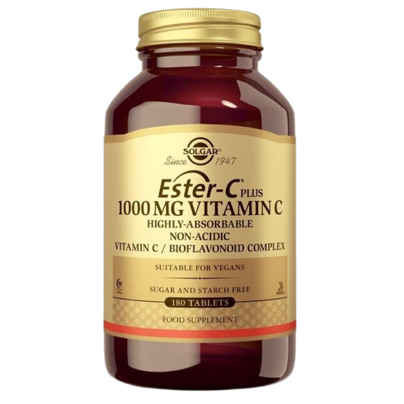 Ester-C® Plus está formulado de forma exclusiva por Solgar® y proporciona una vitamina C ampliamente investigada con un pH neutro (no ácida). Además, Ester-C® Plus contiene los metabolitos que se encuentran de forma natural con la vitamina C en la naturaleza. Se utiliza un proceso de elaboración especial para formar un complejo único de metabolito ascorbato cálcico. Por su caracter no ácido, es mejor tolerada que otras presentaciones de vitamina C.