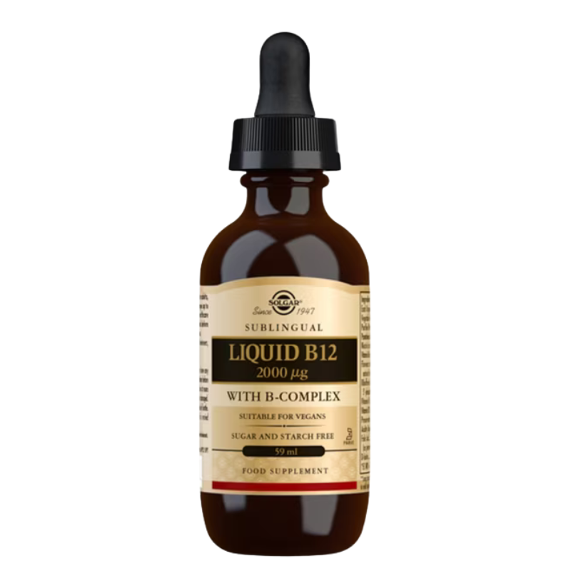 Vitamina B12 líquida con B-Complex 2000 µg de Solgar® proporciona una alta concentración de vitamina B12 (2000 microgramos) por mililitro. Además, esta vitamina B12 se acompaña del resto de vitaminas del grupo B, también en alta concentración, facilitando así la sinergia entre ellas.