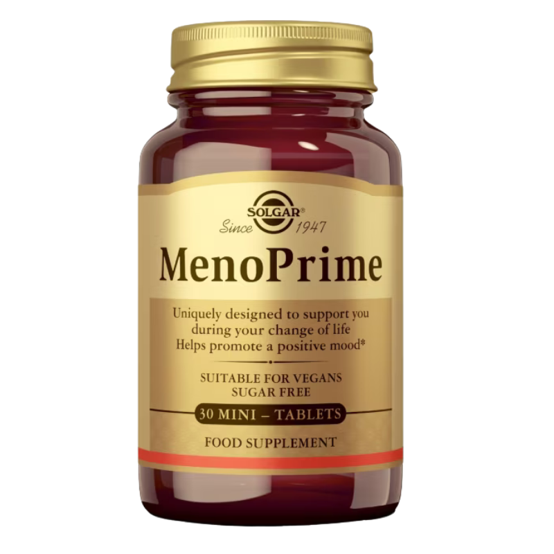 MenoPrime de Solgar® es Un producto innovador que ha sido diseñado especialmente para mujeres de más de 45 años que buscan un apoyo en la fase de la vida que conduce a la menopausia. Combina ingredientes de origen vegetal estudiados científicamente a base de plantas, ruibarbo siberiano (ERr-731®) y azafrán (affron®).