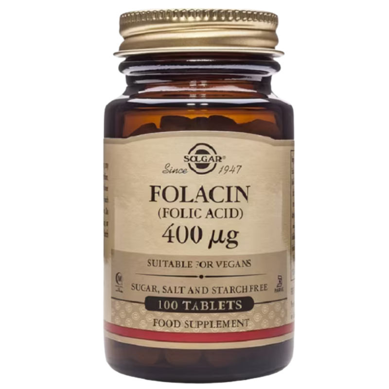 Folacín (ácido fólico) 400 µg de Solgar® proporciona 400 microgramos de ácido fólico en forma de ácido pteroilglutámico por comprimido.