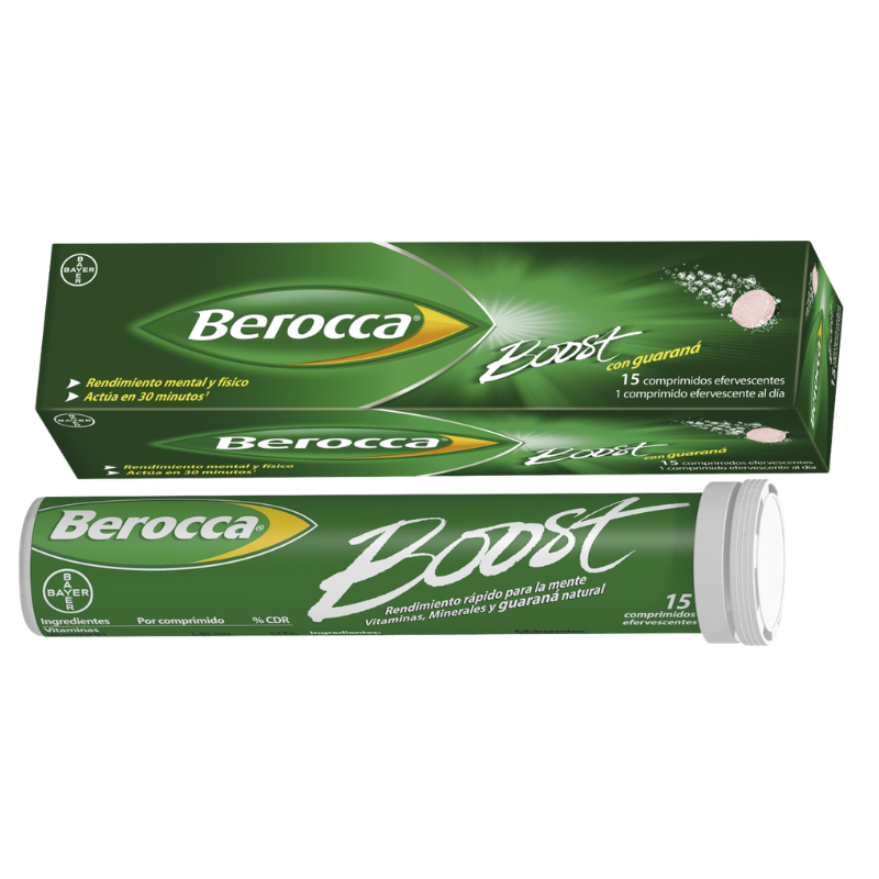 Berocca Boost es una combinación específica de vitaminas B, vitamina C, minerales esenciales y guaraná de origen natural.