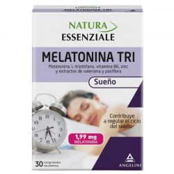 Es un complemento alimenticio con melatonina, L-triptófano de origen vegetal, vitamina B6, zinc y extractos de Valeriana officinalis L. y Passiflora incarnata L.