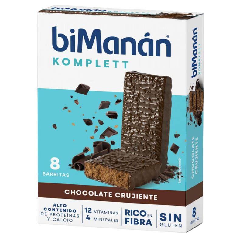 BiManán beKomplett Chocolate Crujiente 2x8uds son barritas de chocolate que actúan como ayuda en procesos de pérdida de peso ya que poseen una acción saciante para evitar el picoteo entre horas.