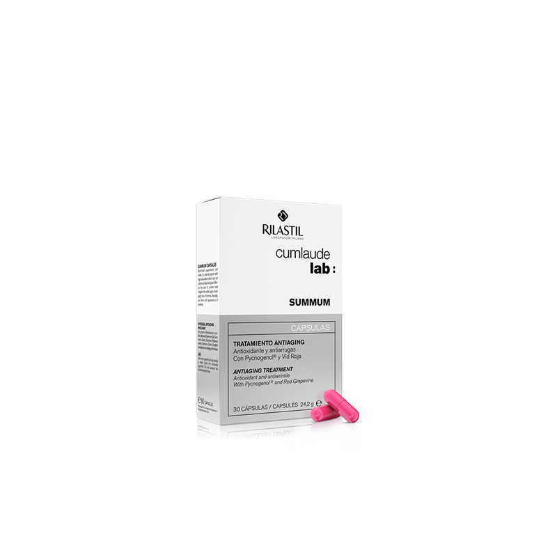 Por cápsula: Hidrolizado de colágeno de pescado (150 mg), cápsula (gelatina, colorantes: dióxido de titanio, óxido de hierro amarillo, óxido de hierro azul y azorrubina), ácido hialurónico (95 mg), extracto de pepitas de uva Vitis vinifera L. (50 mg) titulada en resveratrol (2,5 mg), ácido alfa lipoico (50 mg), ácido L-ascórbico (vitamina C), antiaglomerante: dióxido de silicio, sulfato de zinc, extracto de melón Cucumis melo L. (10 mg) titulado en SOD (gluten), antiaglomerante: sales de magnesio de ácidos grasos, selenito sódico.