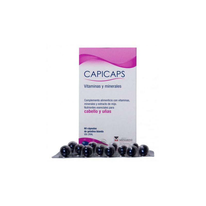 Aceite de pescado rico en ácidos grasos Omega 3 (EPA 41,4 mg y DHA 27,6 mg), vitamina C (ascorbato cálcico), óxido de magnesio, agente de carga: aceite de borraja 60 mg (excipiente), extracto de semillas de mijo (Panicum milliaceum) rico en Metionina (25 mg), L-Cistina 50 mg, espesante E 901, sulfato de hierro, emulgente E322, vitamina E, nicotinamida, pantotenato cálcico, óxido de Zinc, vitamina B6, vitamina B2, vitamina B1, ácido fólico, Biotina, vitamina B12, lecitina de soja (excipiente) 20 mg, cera amarilla de abejas (excipiente) 25 mg.