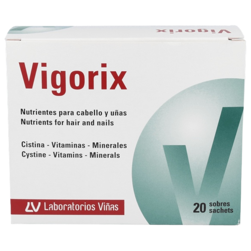 Vigorix es un complemento nutritivo con aminoácidos, oligoelementos y vitaminas para el fortalecimiento de las uñas y el pelo.