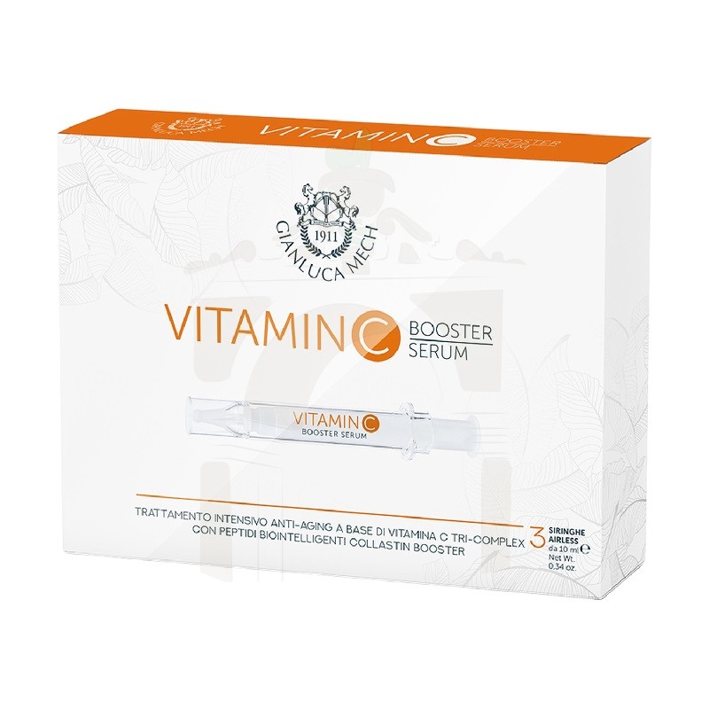 Vitamina C+ booster sérum de Gianluca Mech es un producto de cuidado facial intensivo antiedad a base de vitamina C tri-complex con refuerzo de