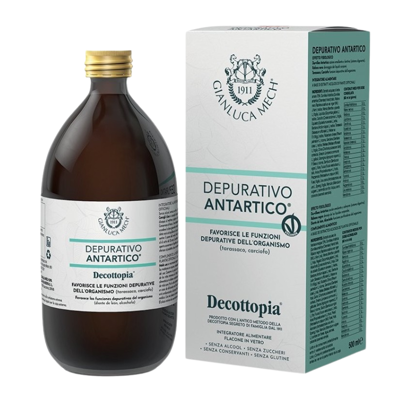 Depurativo Antartico de Gianluca Mech es un complemento alimenticio que promueve la función digestiva, el equilibrio del peso corporal