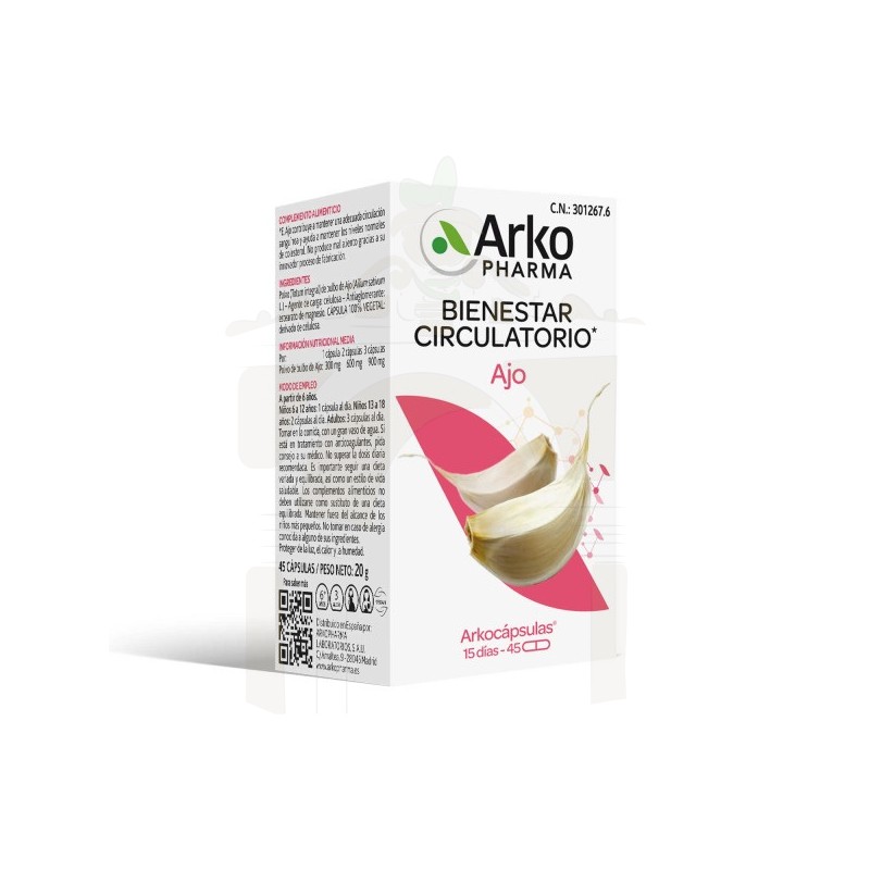 Arkocápsulas® Ajo es un complemento alimenticio especialmente diseñado para el bienestar circulatorio.