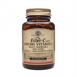 Ester-C® Plus está formulado de forma exclusiva por Solgar® y proporciona una vitamina C ampliamente investigada con un pH neutro (no ácida). Además, Ester-C® Plus contiene los metabolitos que se encuentran de forma natural con la vitamina C en la naturaleza. Se utiliza un proceso de elaboración especial para formar un complejo único de metabolito ascorbato cálcico. Por su caracter no ácido, es mejor tolerada que otras presentaciones de vitamina C.