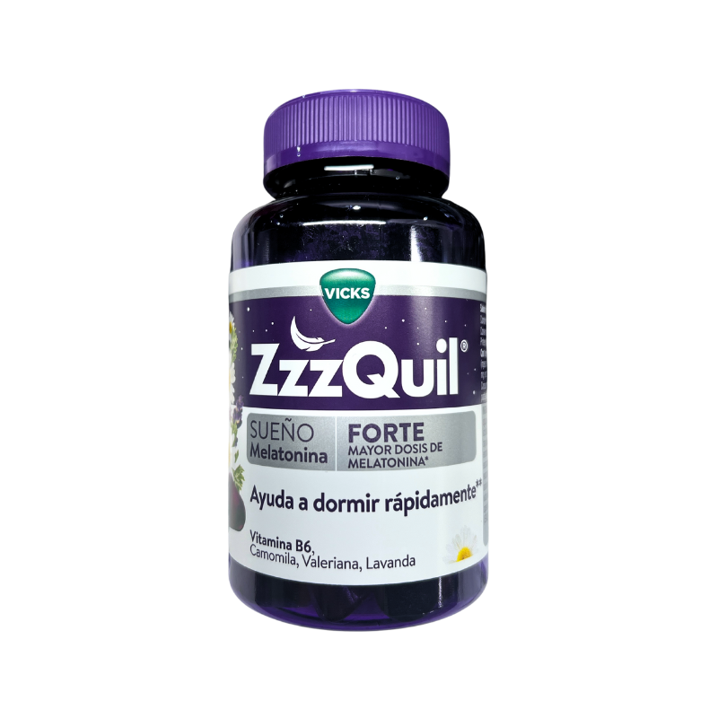 ZzzQuil Forte, gummies para dormir con una mayor dosis de melatonina. Lo natural es dormir bien. Pero a veces, puede que necesites un poco de ayuda para poder hacerlo. No todos metabolizamos la melatonina de la misma forma. Hay gente que la metaboliza más rápido y por ello necesita una dosis mayor a 1 mg. ZzzQuil Forte es un complemento alimenticio que contiene una dosis mayor de melatonina , para los momentos en los que necesitas una ayuda extra para conciliar el sueño. Ayuda a conciliar el sueño más rápidamente y a despertarse renovado. Dado que la melatonina que se toma antes de acostarse se elimina de tu organismo mientras duermes, ZzzQuil Forte no provoca somnolencia al día siguiente y no genera dependencia.