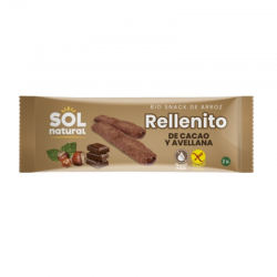 Rellenito de chocolate y avellanas orgánico y sin gluten de Sol Natural. Una combinación perfecta para disfrutar de un snack saludable y delicioso.