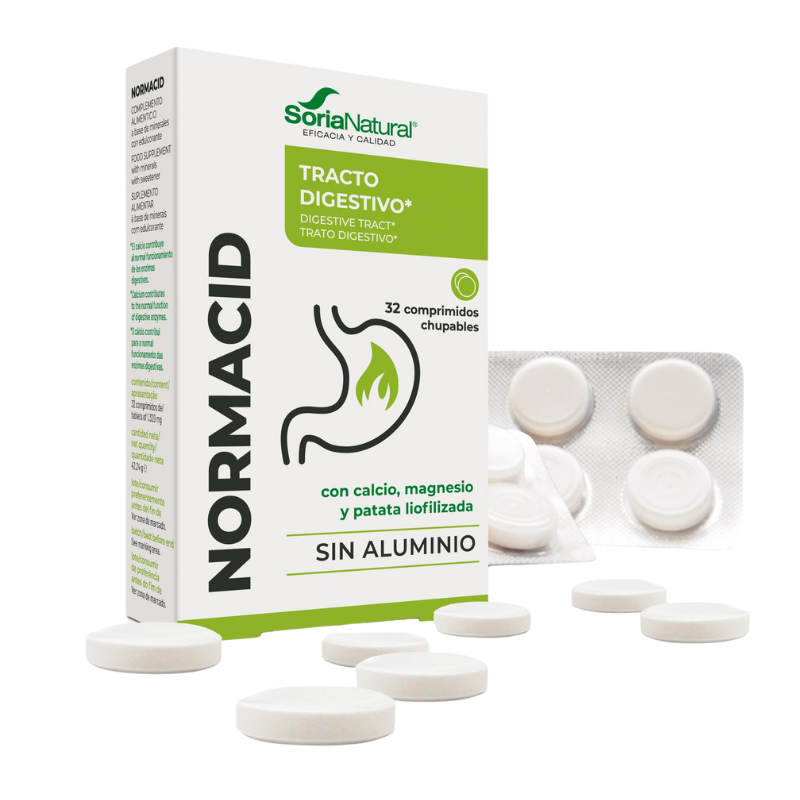 Normacid comprimidos, favorece el normal funcionamiento de las enzimas digestivas, ayudando a prevenir la acidez estomacal tras la ingesta de comidas pesadas.