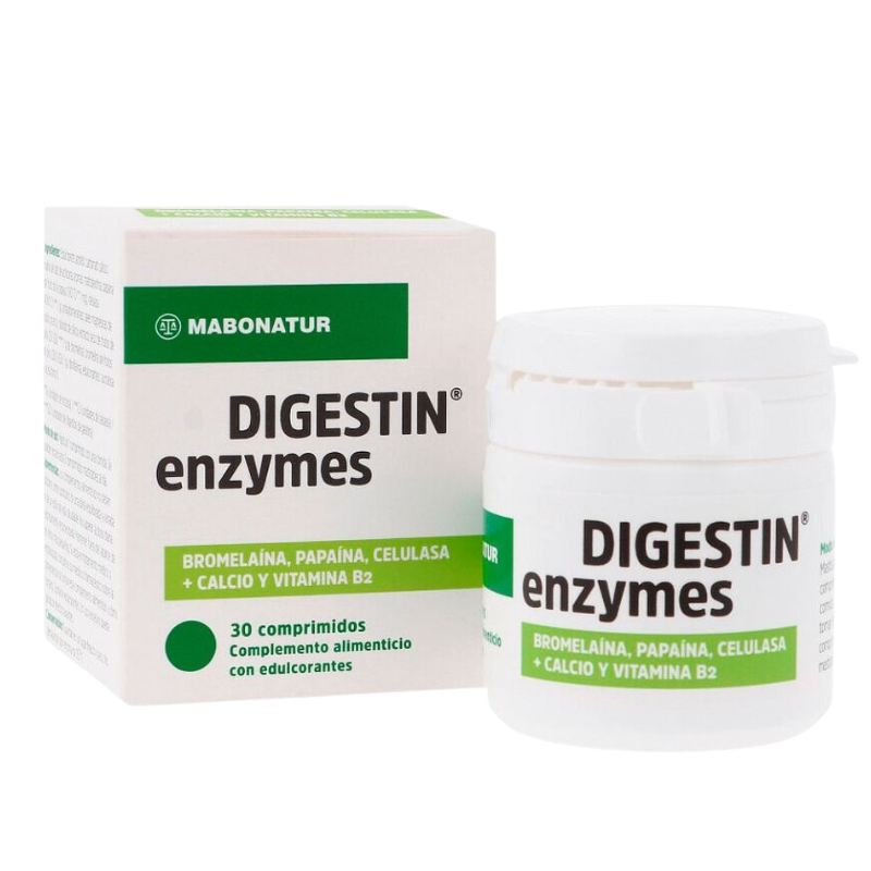 Digestin Enzymes 30 Comprimidos, es un suplemento especialmente formulado para mejorar la digestión y aliviar molestias digestivas como la pesadez y el malestar tras las comidas.