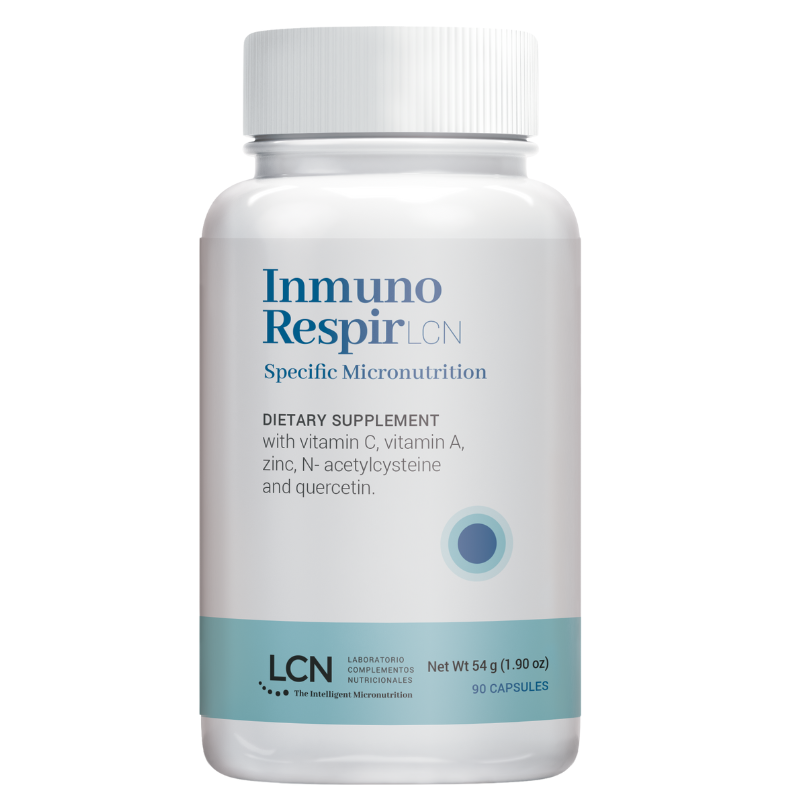 Conjunto equilibrado de N-acetilcisteína, quercetina, vitamina C, vitamina A y zinc, que ayuda en los procesos respiratorios y refuerza el sistema inmune.