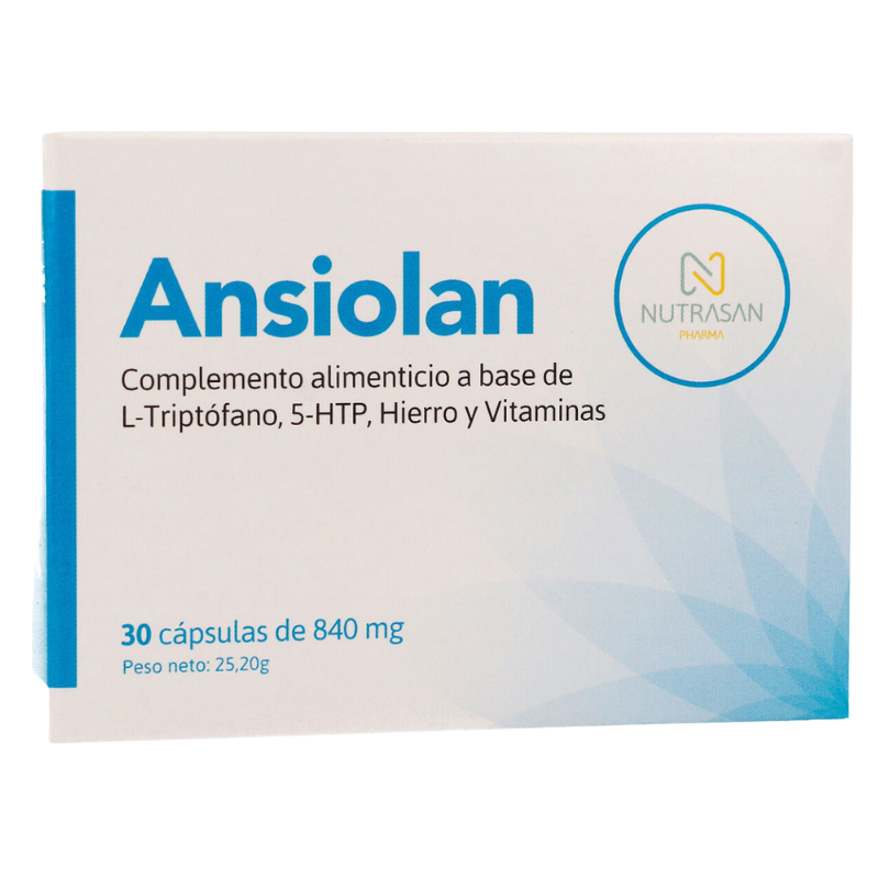 Apoya tu bienestar con Nutrasan Ansiolan, formulado con triptófano, 5-HTP, vitaminas y minerales esenciales. Ideal para el cuidado diario.