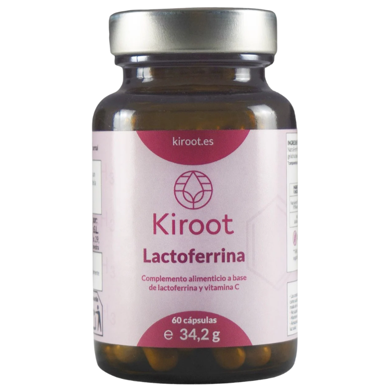 Lactoferrina 300 mg Kiroot es un complemento alimenticio a base de lactoferrina (NatraFerrin® lactoferrin, 95% lactoferrina), una proteína de origen lácteo con múltiples propiedades y vitamina C.