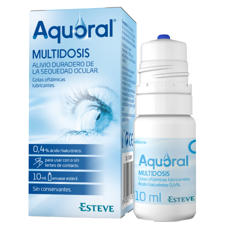 Aquoral multidosis es una solución oftálmica humectante, lubricante y estéril de ácido hialurónico (0,4% p/v)