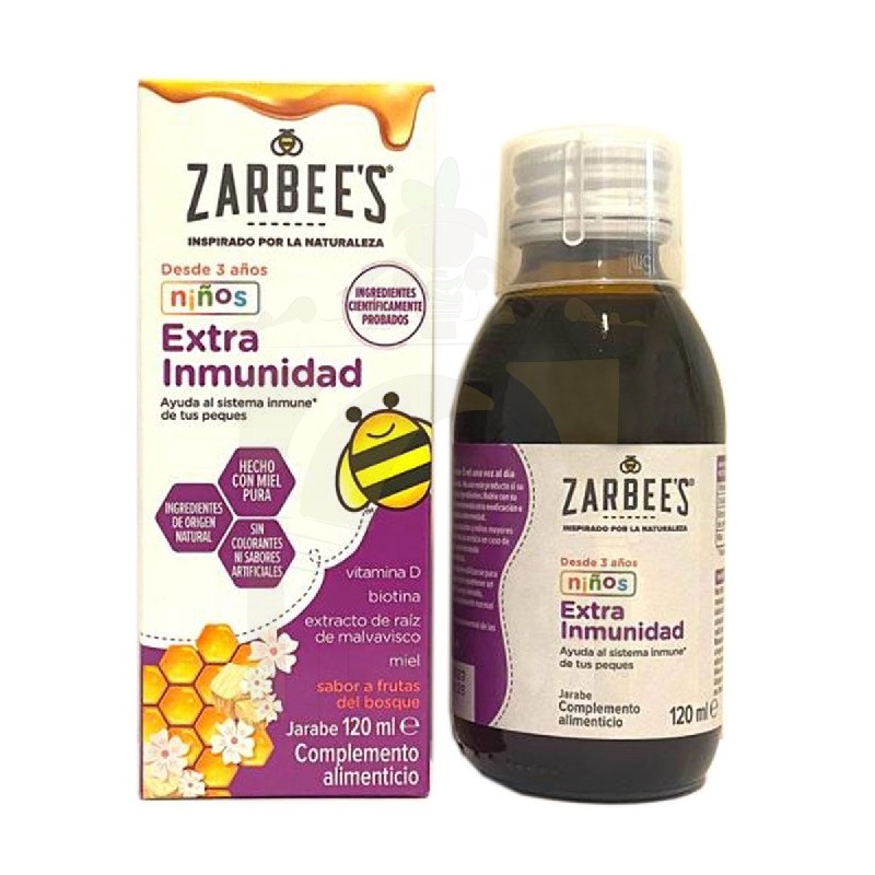 Jarabe Zarbee's Niños Extra Inmunidad es un suplemento alimenticio diseñado para fortalecer el sistema inmunológico de los niños.
